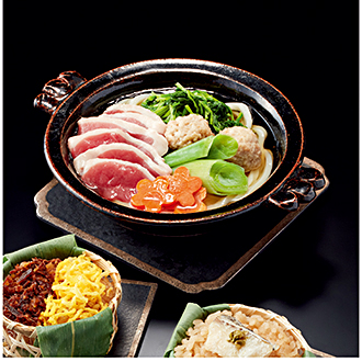 〈美濃吉〉壬生菜と九条ねぎの合鴨つくね鍋