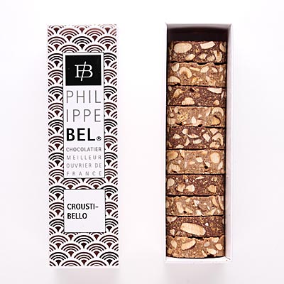 サブレのようなチョコレート生地の中にプラリネ、アーモンド、ヘーゼルナッツ、スパイス。しっかり塩味も入っています。