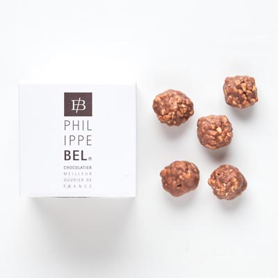 ローストしたアーモンドのプラリネをミルクチョコレートでコーティングしたロッシェ。