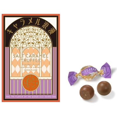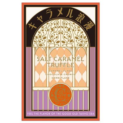 キャラメルパウダーを合わせたミルクチョコレートに、キャラメルフレークやチョコクランチなどを混ぜ合わせ、食感の楽しいトリュフに仕立てました。ほんのり感じる塩味がアクセントになっています。